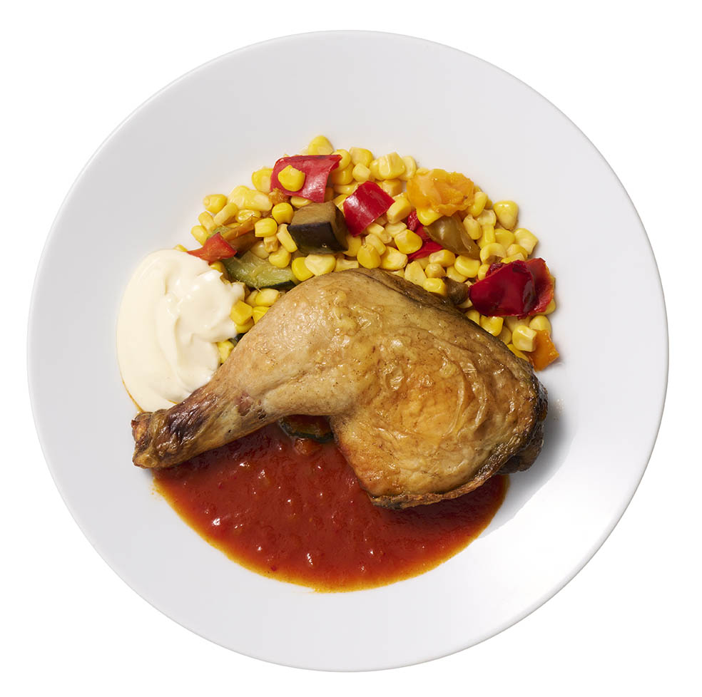 夏のチキンレッグのコンフィ スパイシートマトソース