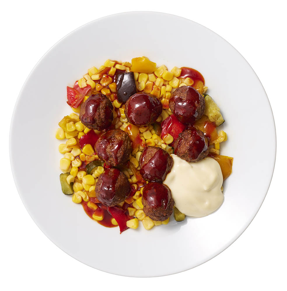 植物由来のヘルシーなプラントボールに、韓国風の旨辛ヤンニョムソース&とろ〜りチーズがベストマッチ。