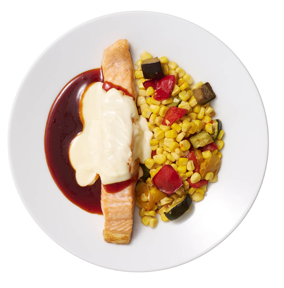 夏のサーモンフィレ ヤンニョムチーズソース