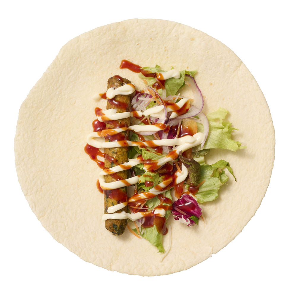 柔らかいシンブレッドに包まれたベジソーセージを、ヤンニョムマヨでピリ辛仕上げ。片手でパクっと食べられるのも嬉しいポイント!
