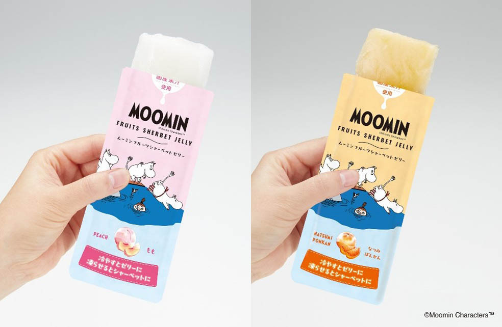 ムーミン谷の仲間たちをデザインしたパッケージが目を引くこのシャーベットゼリーは、国産果汁をたっぷり使用した夏季限定の特別なスイーツ。