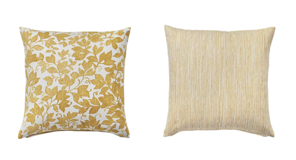 リーフ模様とストライプを気分に合わせて選べるので、クッションをひっくり返すだけで、手軽にお部屋の雰囲気を変えられます。